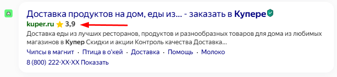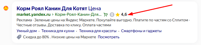 Если магазин зарегистрирован на Маркете, то его рейтинг будет показан рядом с отображаемой ссылкой: