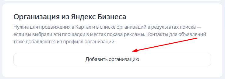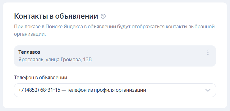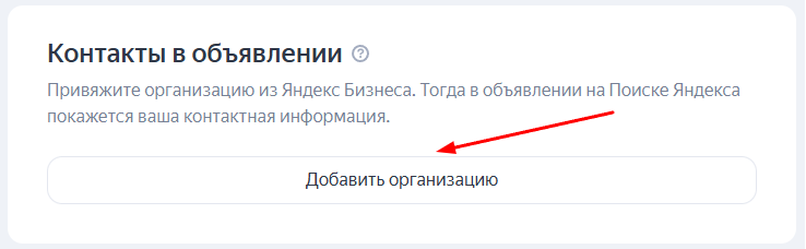 Создайте визитку или привяжите к объявлению карточку из Яндекс Бизнеса.