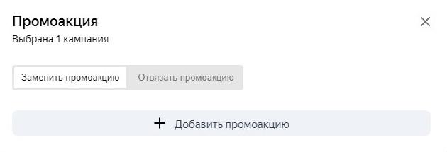 Здесь вы можете отвязать действующую промоакцию от кампании или заменить ее на другую.
