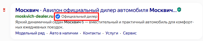 Объявления от официальных автодилеров помечаются на поиске соответствующим значком. Для этого нужно два условия: