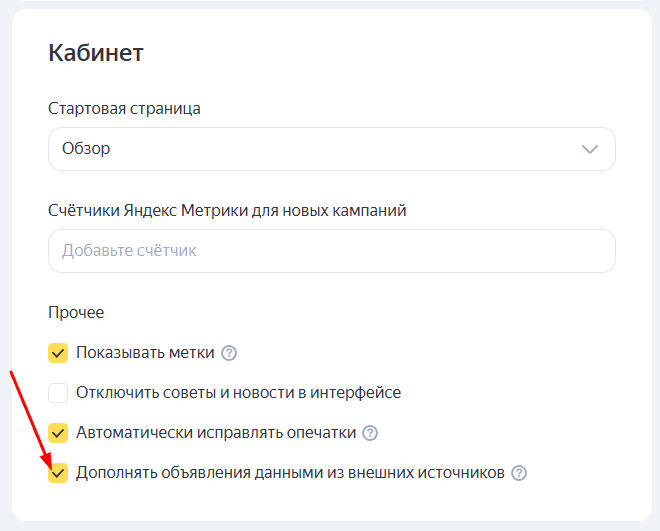 По умолчанию объявления Яндекс Директа дополняются данными из внешних источников, если таковые имеются. К ним относятся: Яндекс Маркет, Яндекс Бизнес, Яндекс Браузер, Авто.ру и Центральный банк России.