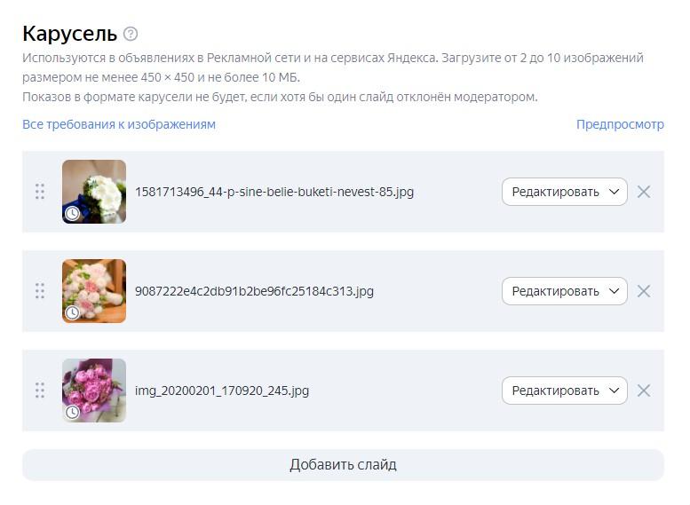 К одному объявлению можно добавить от 2 до 10 дополнительных изображений. Очередность слайдов можно менять, перетаскивая их вверх или вниз.