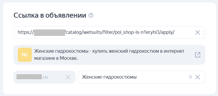 Вы также можете добавить ссылку на страницу промоакции. Важно, чтобы она находилась на том же сайте, куда ведет реклама. Исключение составляют только страницы компании в соцсетях, на Яндекс Маркете и Турбо-страницы.