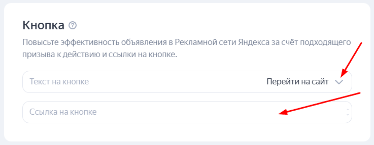 Такая ссылка доступна для текстово-графических объявлений на поиске Яндекса и некоторых форматов в РСЯ. По умолчанию ее текст повторяет заголовок объявления, но этот параметр можно изменить в настройках.