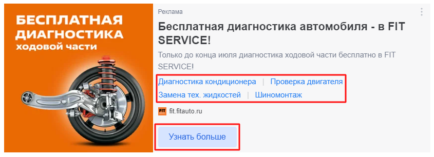 Объявление с быстрыми ссылками и описаниями в эксклюзивном формате