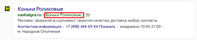Можно указать в отображаемой ссылке высокочастотный ключевой запрос или ваше УТП, не вошедшее в заголовок.