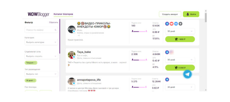 Ежемесячно биржа добавляет в каталог более 1000 новых авторов, чтобы расширить выбор инфлюенсеров, блогов и каналов для запуска рекламных кампаний.