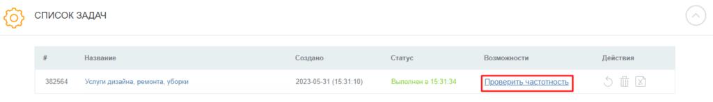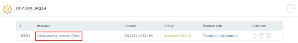 Кликните по ссылке в отчете «Проверить частотность». Откроется страница нужного инструмента — список запросов для проверки будет предзаполнен.