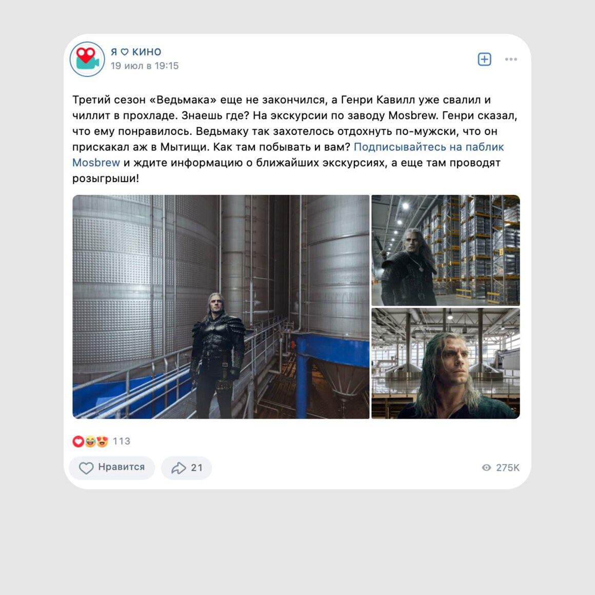 Например, для MDK мы сделали мем в стиле сообщества, а для «Я ♡ КИНО» решили обыграть инфоповод — третий сезон сериала «Ведьмак» на тот момент только вышел.