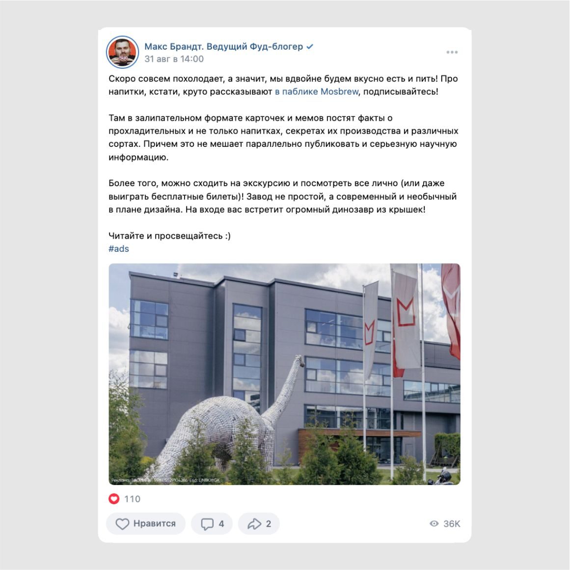 SALO уже давно сотрудничает с МПК. Мы делали для компании интеграции с блогерами, продвигали линейку лимонадов и безалкогольных напитков. Также мы регулярно работаем с инфлюенсерами для продвижения экскурсий на пивоварню. А летом 2023 года к нам обратились за помощью с продвижением паблика в VK.