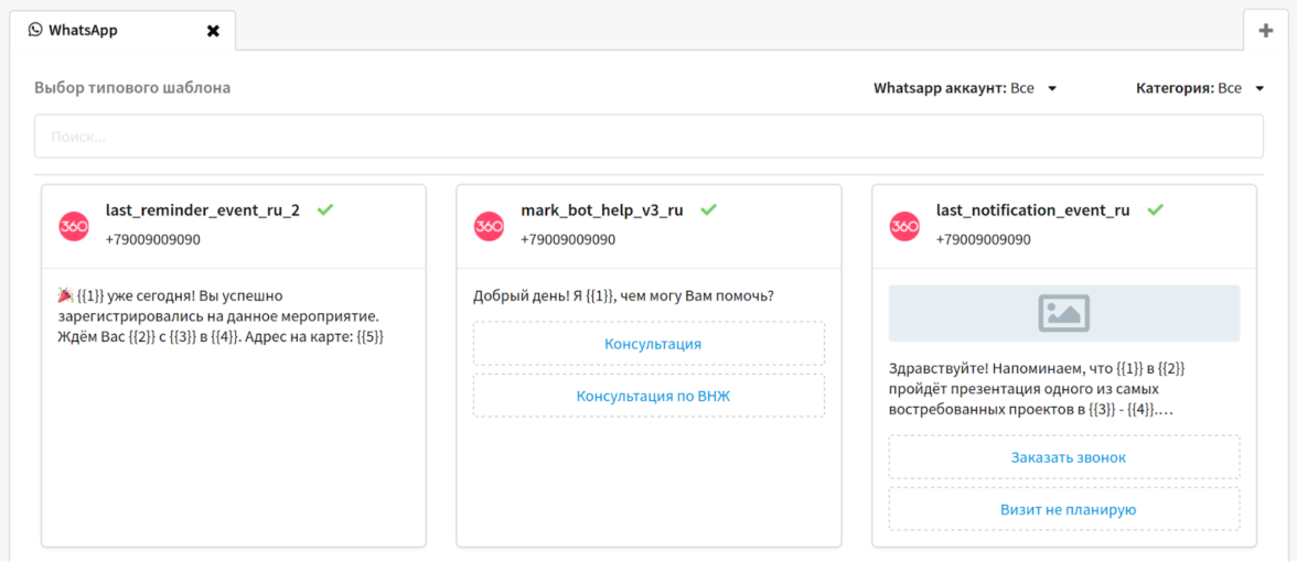 Пример шаблонов для рассылки из Altcraft Platform в WhatsApp