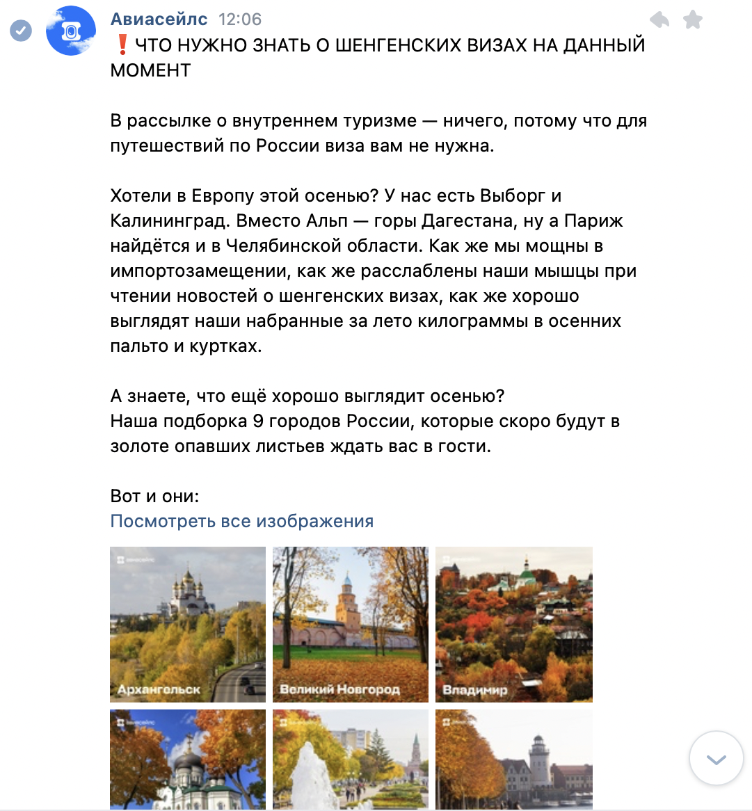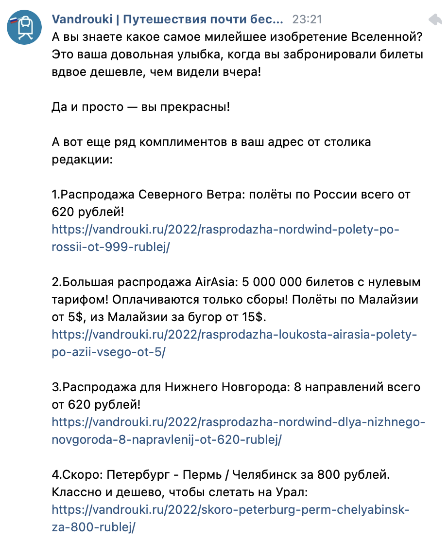 Полезная рассылка от сервиса бронирования авиабилетов по актуальной теме. Сообщение не предлагает ничего купить, но повышает лояльность клиентов, которые узнали важную информацию.
