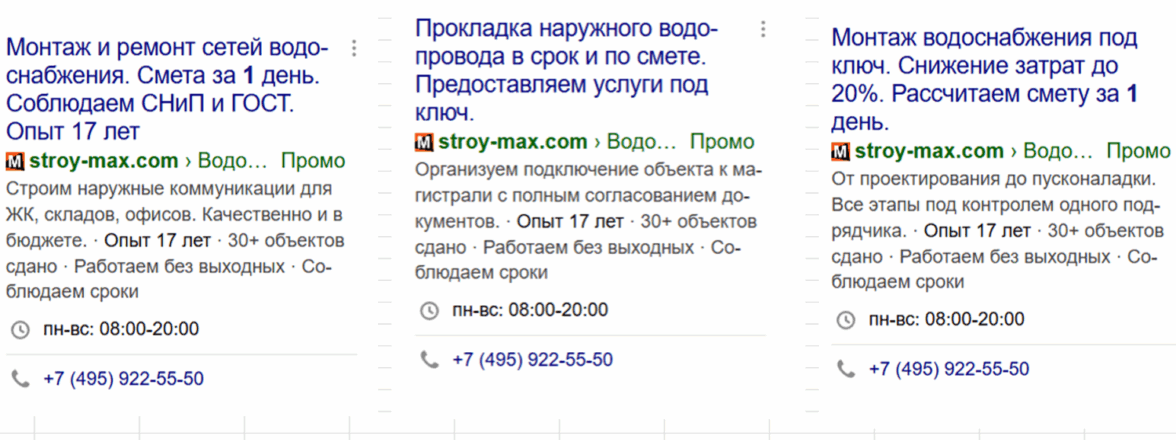 • Привели структуру объявлений в рабочий вид: добавили быстрые ссылки, уточнения для повышения кликабельности