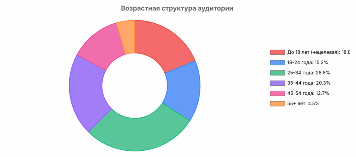 • 18,8% — посетителей были младше 18 лет (нецелевая аудитория)