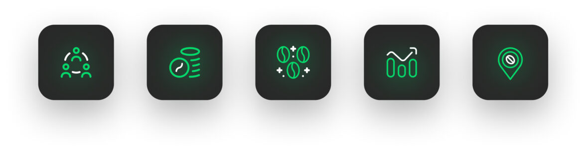 В блоке с показателями мы отображаем, сколько тонн кофе, литров молока и сиропа, круассанов и стаканчиков кофе было продано за всё время.