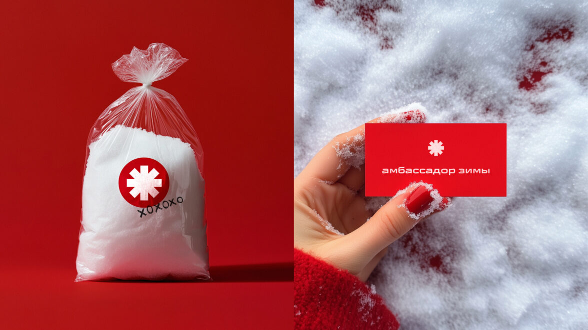 Собственная линейка товаров включает снег, мандарины, шампанское и икру разных видов. Выбор продуктов неслучайный — ведь он все еще символ Нового Года.