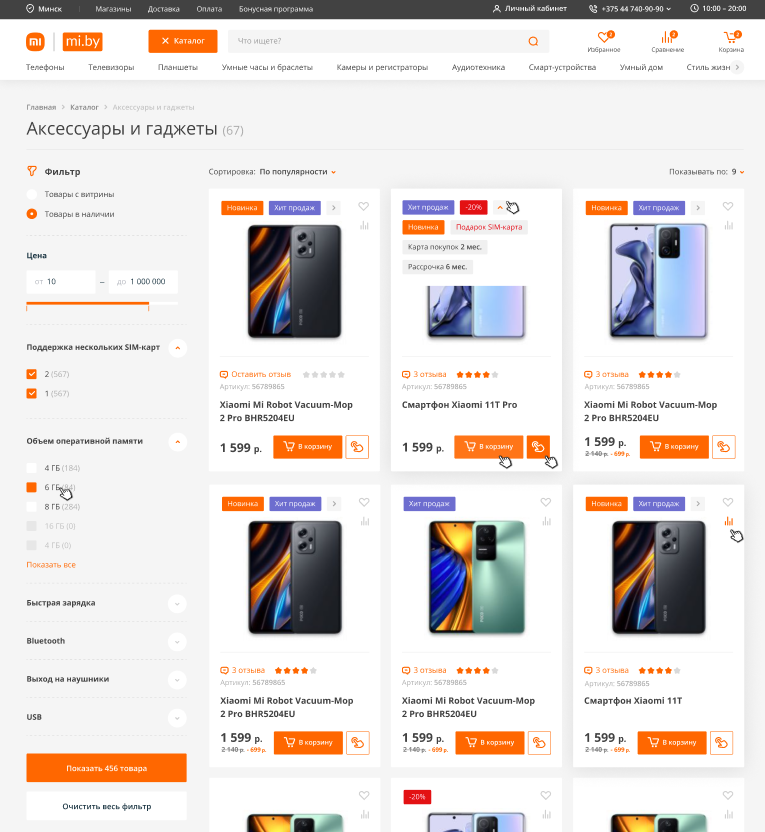 Наш клиент — авторизованные магазины Xiaomi в Беларуси, представленные на mi.by. Все товары на сайте находятся на собственных складах компании «МиБай», официально импортированы и сертифицированы. Начальный этап нашего сотрудничества заключался в техническом анализе сайта, однако вскоре стало очевидно, что требуется полная переработка ресурса.
