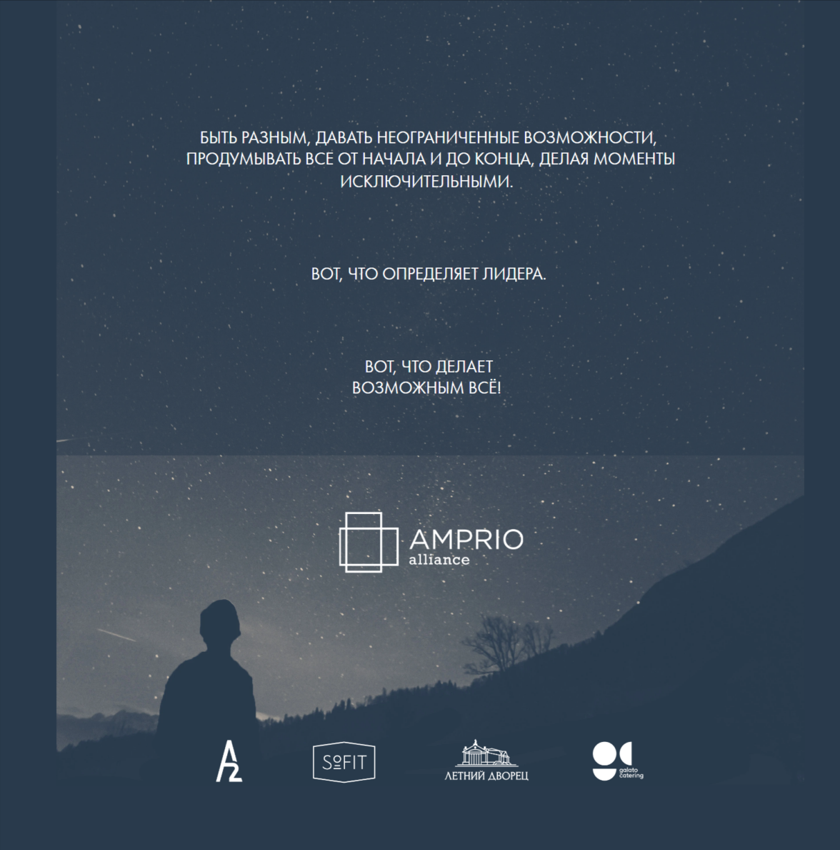 Amprio Alliance — мы девелоперы эксклюзивных event-пространств, которые позволяют воплотить в жизнь любые идеи.