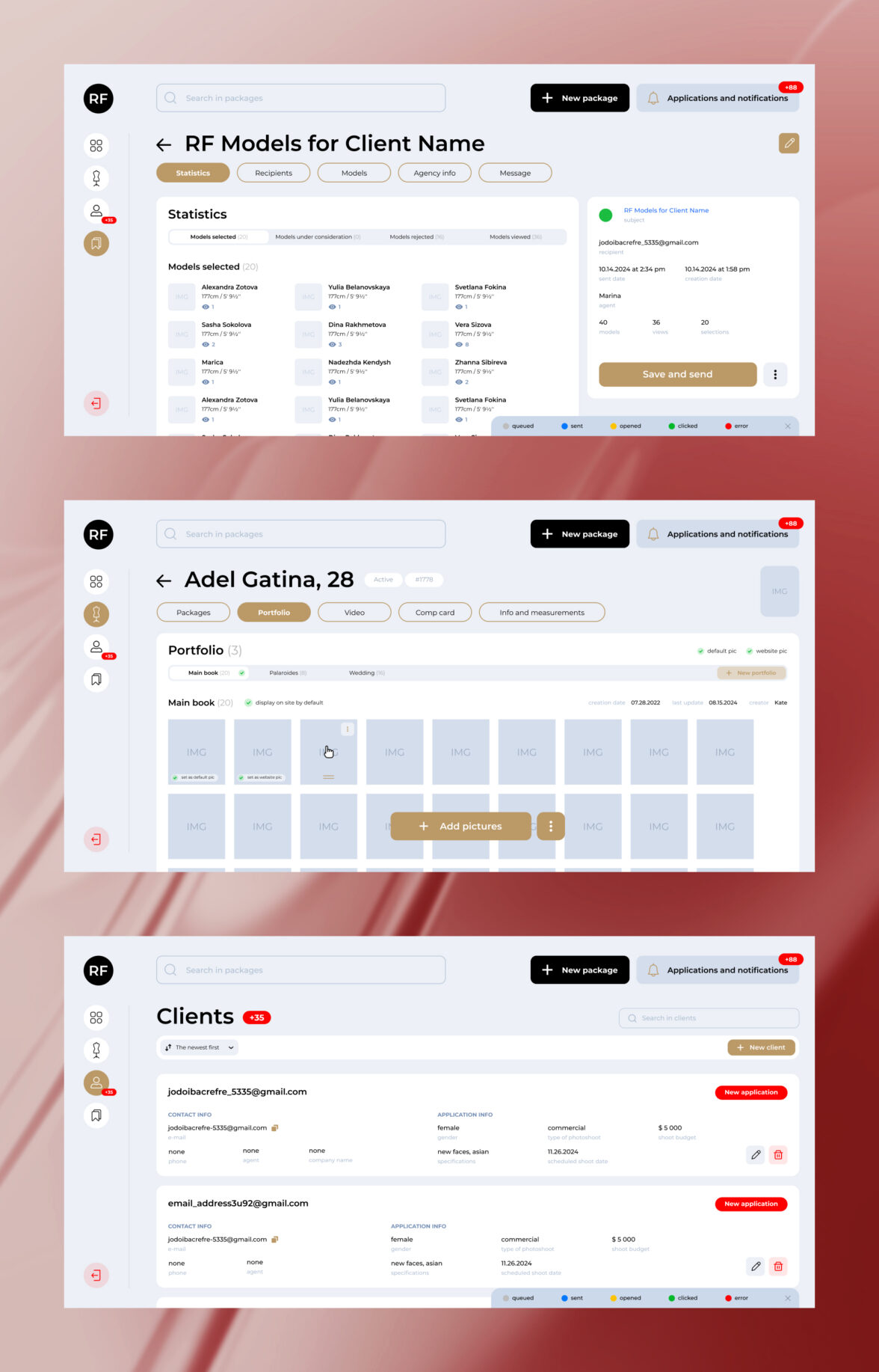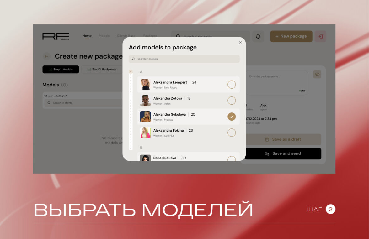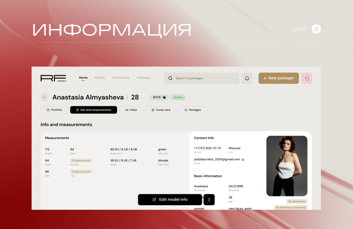 RFMODELS — крупный игрок рынка, у которого ошибка в управлении портфолио стоит дорого: не только времени менеджера, но и качества выбора клиента. До проекта агентство работало через Mediaslide (который по ощущениям застрял где-то в 00-х), как единую базу моделей для букинга и отправки портфолио, но сервис уперся в 3 ограничения: