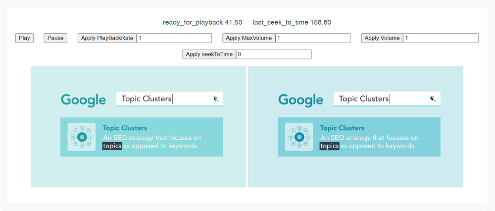 Проверка прошла со второго раза, часть багов, которые были описаны выше, выявилась как раз при пересечение звука и скорости проигрывания. После исправления, все заработало прекрасно. Кстати, можете обратить внимание, как рендер (справа) отличается от изображения видео. А все потому, что браузер вот так обрабатывает и видим уже измененный результат, никому нельзя верить.