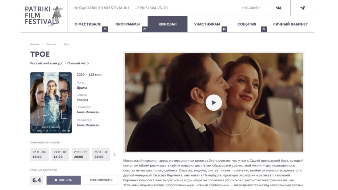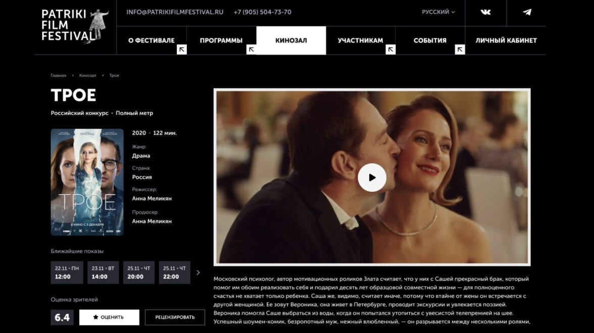 Разработка портала кинофестиваля PATRIKI FILM FESTIVAL — Кейс агентства ZAMEDIA и Promicom