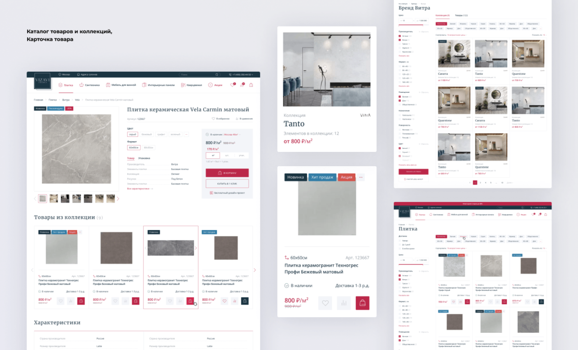 Структурированный каталог: Весь ассортимент керамогранита, керамической плитки и сопутствующих материалов был представлен в удобной для пользователя форме.