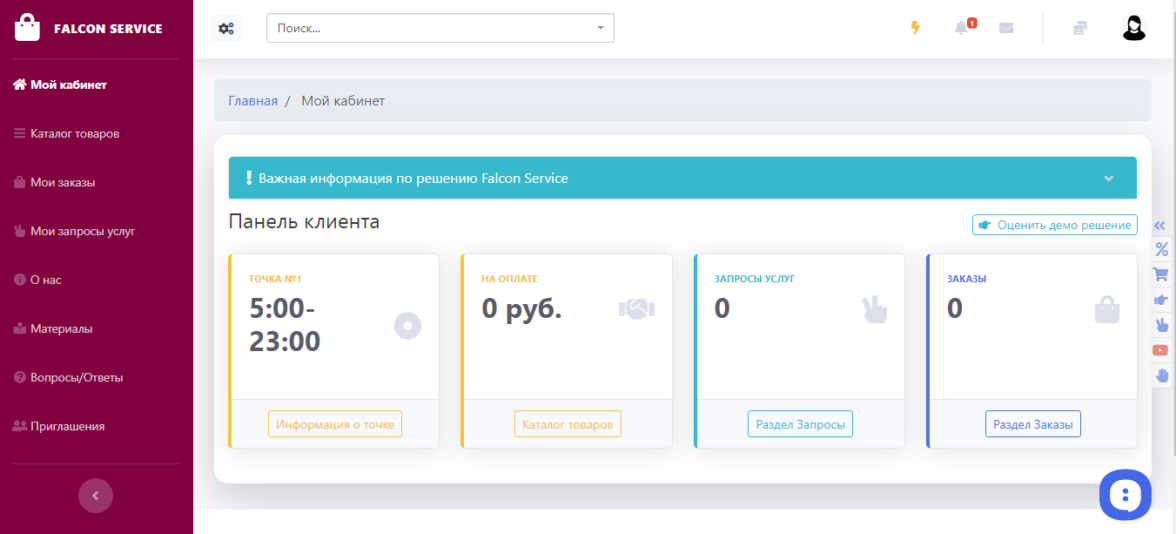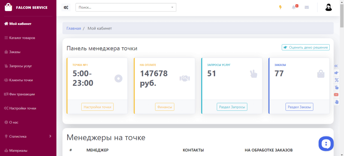 Falcon Service — это возможность создать сайт с личными кабинетами как для клиентов, так и для сотрудников. Этот сервис имеет широкий круг возможностей реализации, но его ключевая особенность — упростить систему приема и обработки заказов, вплоть до автоматизации.