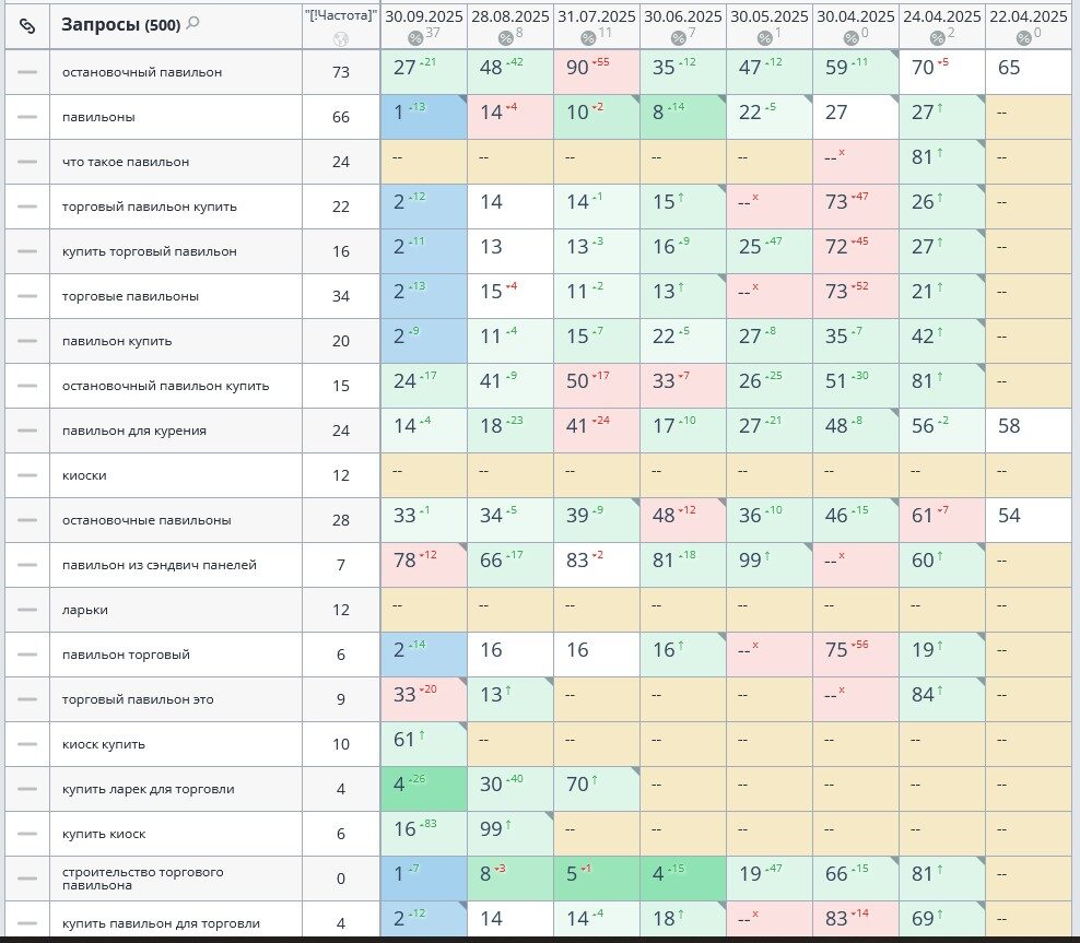 формирование семантического ядра, объединившего около 500 коммерческих и столько же информационных запросов.