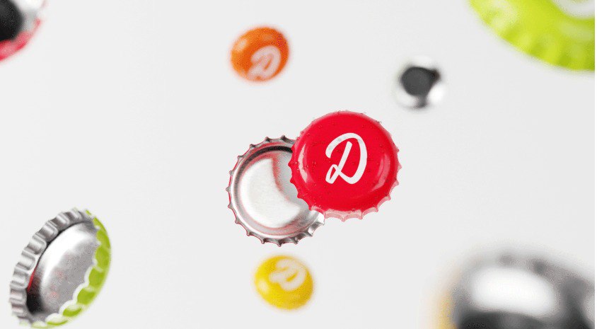 Крышки для бутылок мы решили сделать в фирменных цветах каждого напитка: малиновыми, оранжевыми, желтыми и зелёными.