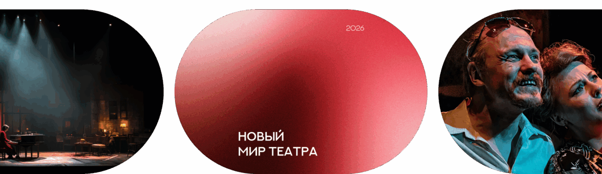 Главная задача — не просто информировать, а вовлекать: удерживать внимание, вызывать визуальный интерес и эмоциональный отклик на каждом экране. Повествование начинается с крупного изображения, работающего как кинокадр, затем переходит к динамичным карточкам спектаклей, где композиция и свет отсылают к кинопостерам. Расположение блоков следует монтажному принципу — от крупного плана к среднему, от эмоции к факту.
