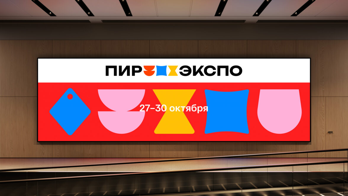 Новая айдентика «ПИР Экспо» — это яркая и адаптивная дизайн-система. Она перенесена на огромное количество носителей: наружную рекламу, билеты, оформление пространства внутри выставки, фотозоны и предметный мерч, создавая целостный и запоминающийся образ главного отраслевого события.