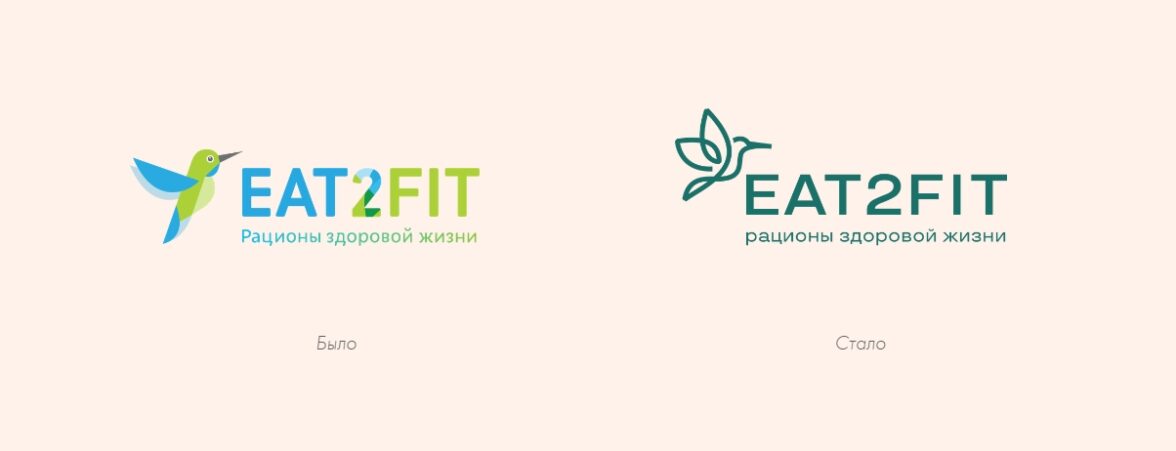 Стремление к упрощению отчетливо отразилось в логотипе: и изображение колибри, и шрифт главного знака стали легче и свободнее. Изящность нового логотипа передает изысканность ресторанных блюд доставки и подчеркивает ценовой сегмент Eat2Fit.