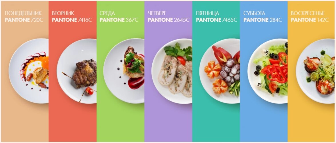 Окрас этикеток был выбран не случайно. Мы обратились к этимологии цвета и определили, что каждый день недели символизирует небесное тело, а вместе с тем и присущие ему тона и смыслы. Так, например, понедельник хранит в себе связь с Луной. Она представляет собой чистоту и невинность, поэтому спутнику соответствует нежно бежевый цвет и его оттенки. Вследствие этого на контейнеры с завтраком, обедом и ужином Eat2Fit каждый понедельник наклеены бежевые этикетки.