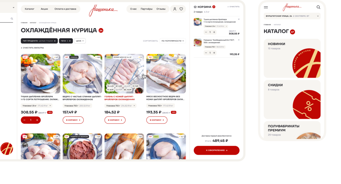 Редизайн и запуск интернет-магазина продуктов «Нашенька»