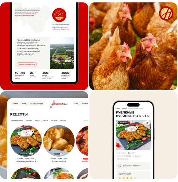 Мы разработали множество ярких и информативных страниц, которые рассказывают о фабрике, продукции и возможностях приготовления вкусных блюд.