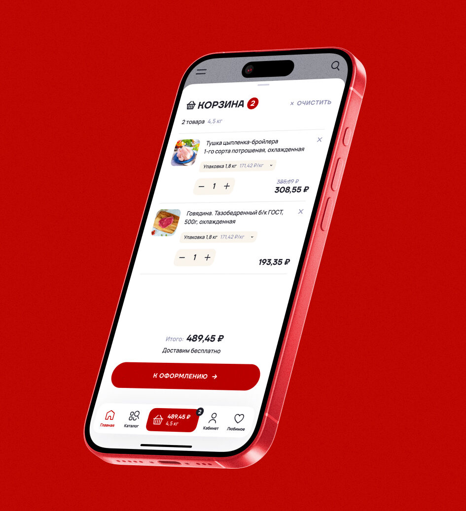 На ней покупатель сразу видит все ключевые разделы интернет-магазина. Тут же он может ознакомиться с каталогом, скидками и акциями. Но самое важное — корзина, которая всегда перед глазами, чтобы ничего не забыть или не положить лишнего.