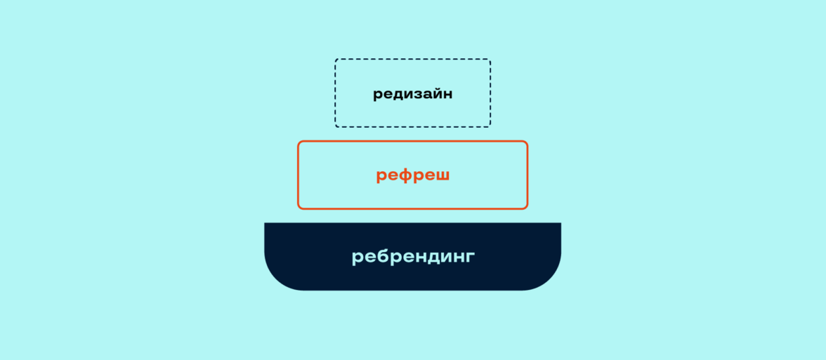 Ребрендинг — это основательное преобразование бренда, затрагивающее его смыслы и визуальную составляющую. Рефреш «освежает», обновляет айдентику бренда, а редизайн применяется к отдельному элементу, который перестал выполнять свою задачу.