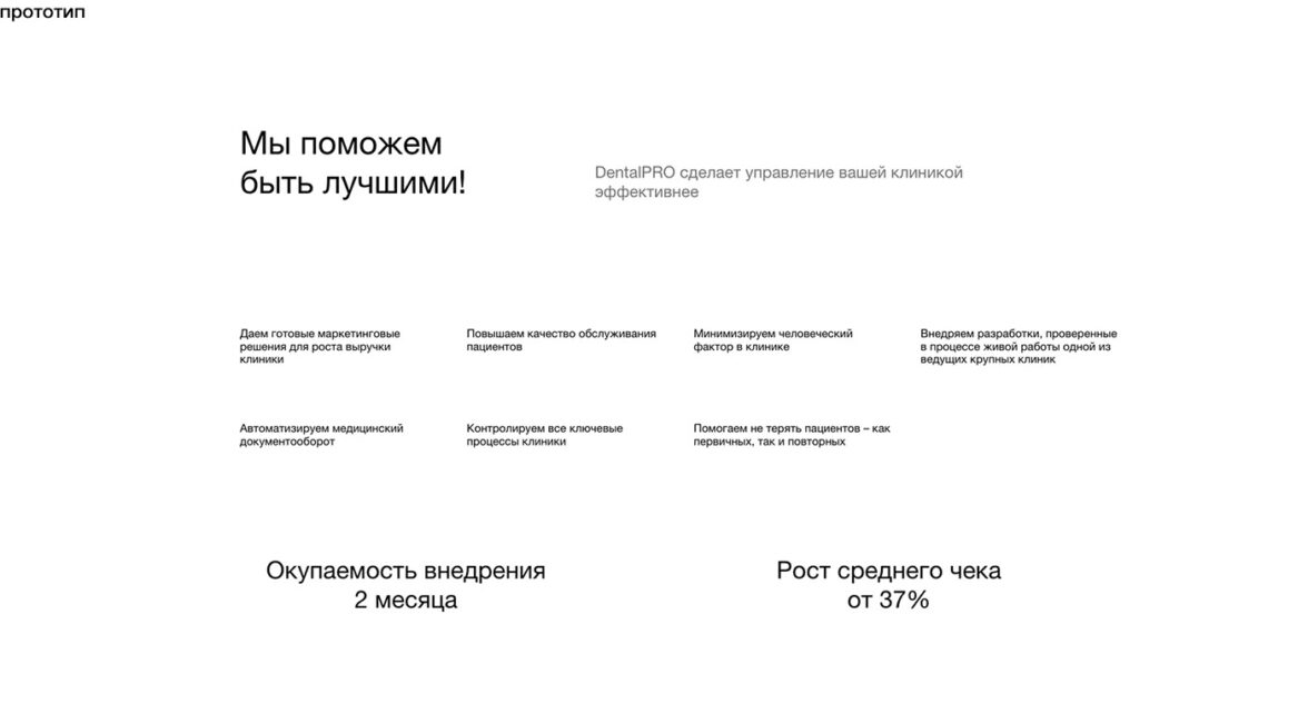 Прежний сайт не отражал ценности продукта DentalPRO, его конкурентных преимуществ продукта и не учитывал сегментацию пользователей. Клиент предоставил четкое представление о задачах и будущей структуре сайта, где предстояло подробно раскрыть: