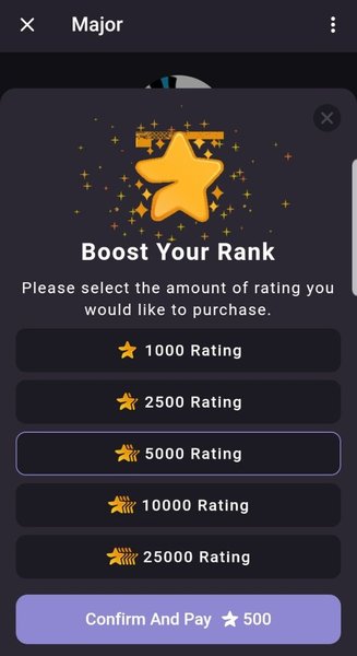 Прокачивать рейтинг можно и себе, и другим пользователям. Чтобы увеличить рейтинг, можно купить звездочки: 1000 звездочек, 2500 звездочек, 5000 звездочек, 10 тысяч звездочек, 25 тысяч звездочек. Они стоят 100, 250, 500, 1000 и 2500 Telegram Stars соответственно.