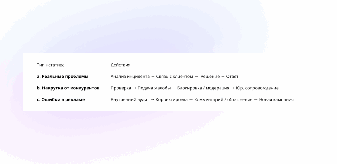 Параллельно мы организовали трёхуровневую систему отработки негатива — в зависимости от его источника и характера: