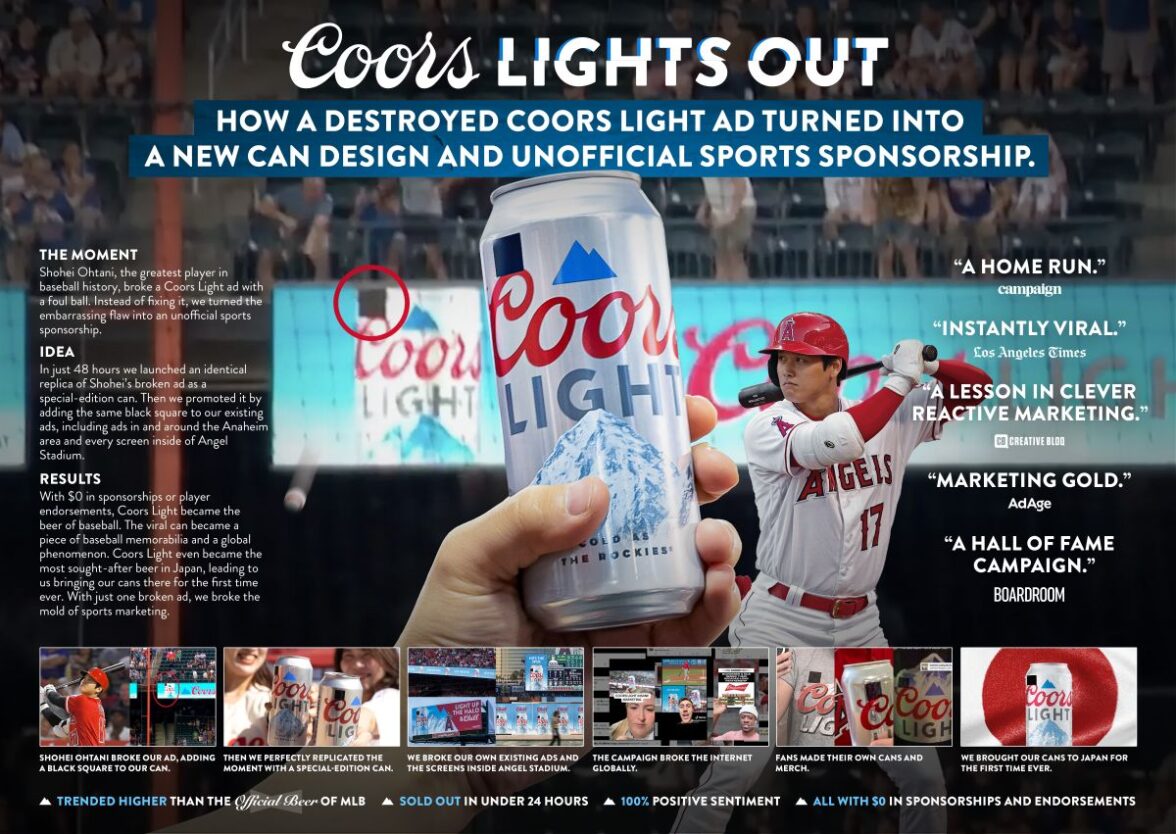 Идею кампании подкинул вместе с мячом бейсболист Los Angeles Angels Сехэйя Отани. Во время матча он погасил часть экрана с рекламой пива Coors Light. Вместо того, чтобы расстроиться, рекламисты увидели в этом хорошую тему для большой кампании. Они поставили на банки черный квадрат с битыми пикселями.