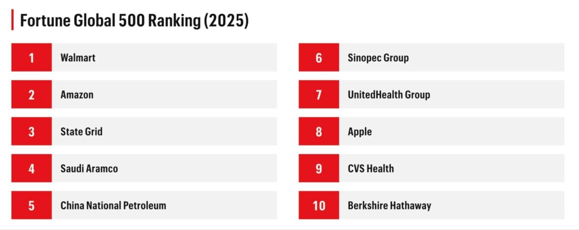 10 крупнейших компаний мира по объему выручки в 2024 году, согласно рейтингу Fortune Global 500.