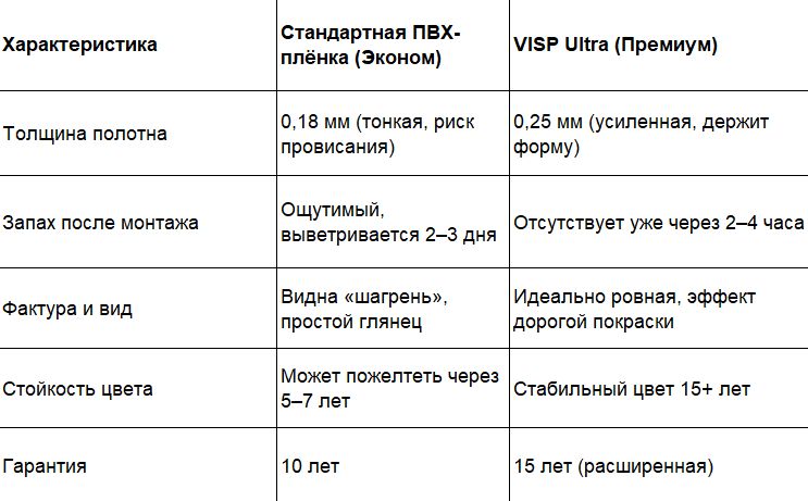 VISP Ultra или стандартная ПВХ‑плёнка: чем отличаются?