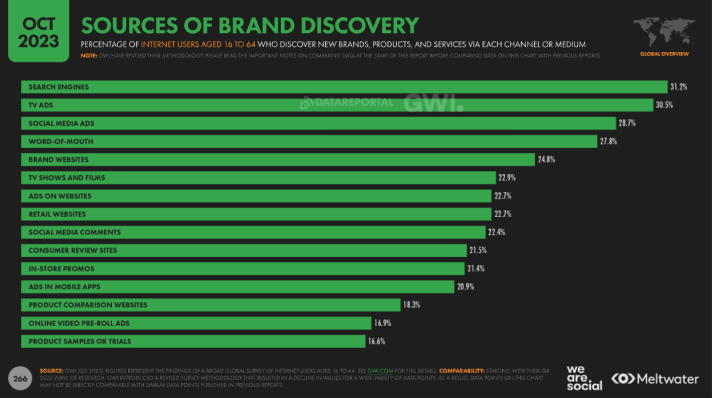 Откуда к бренду приходит клиент — важный вопрос для многих компаний. Данные Digital 2023 October Global Statshot Report предоставляют необходимые ответы.