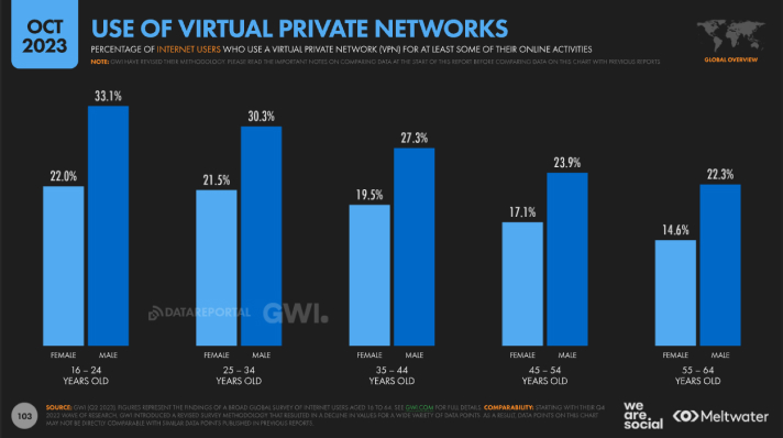 В своем исследовании, специалисты платформ DataReportal, Meltwater и We Are Social, затронули тему использования виртуальных частных сетей.
