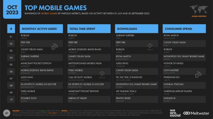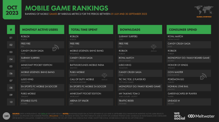 Рейтинг мобильных игр и другие факты из отчета Digital 2023 October Global Statshot Report