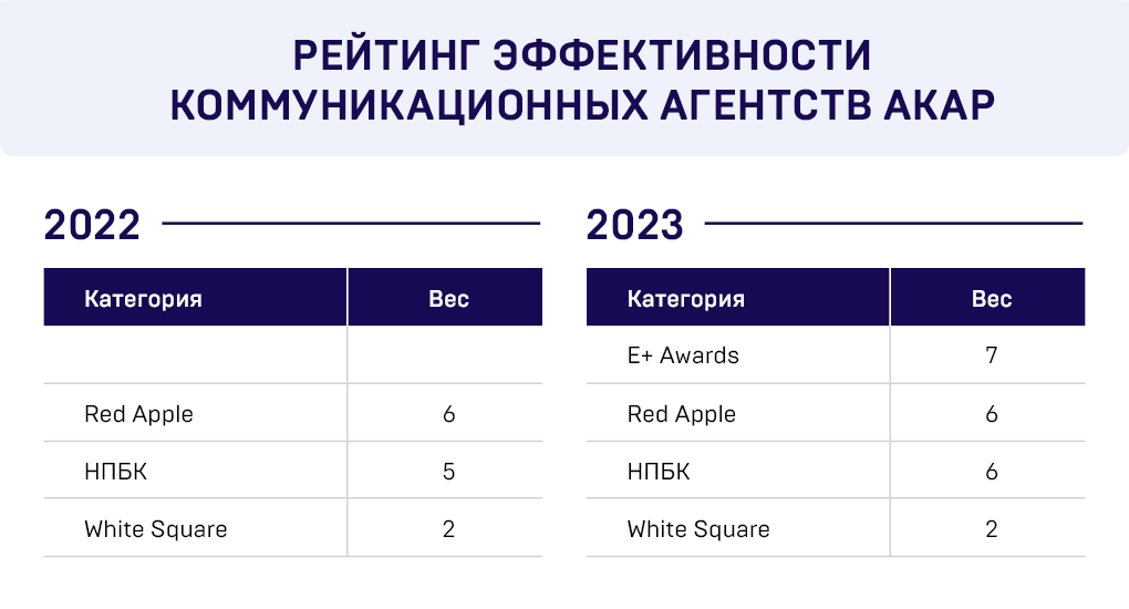 АКАР отдала White Square 2 балла в рейтинге эффективности коммуникационных агентств 2023.
