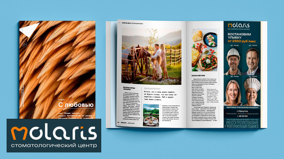 Реклама сети клиник «Molaris» в журнале авиакомпании «МирАэро»