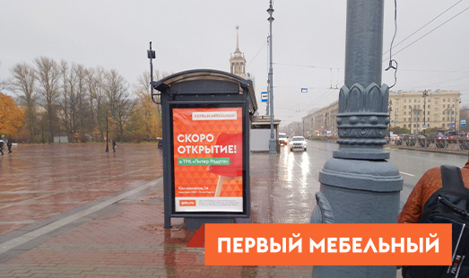 Реклама сети «Первый мебельный» на остановках Санкт-Петербурга