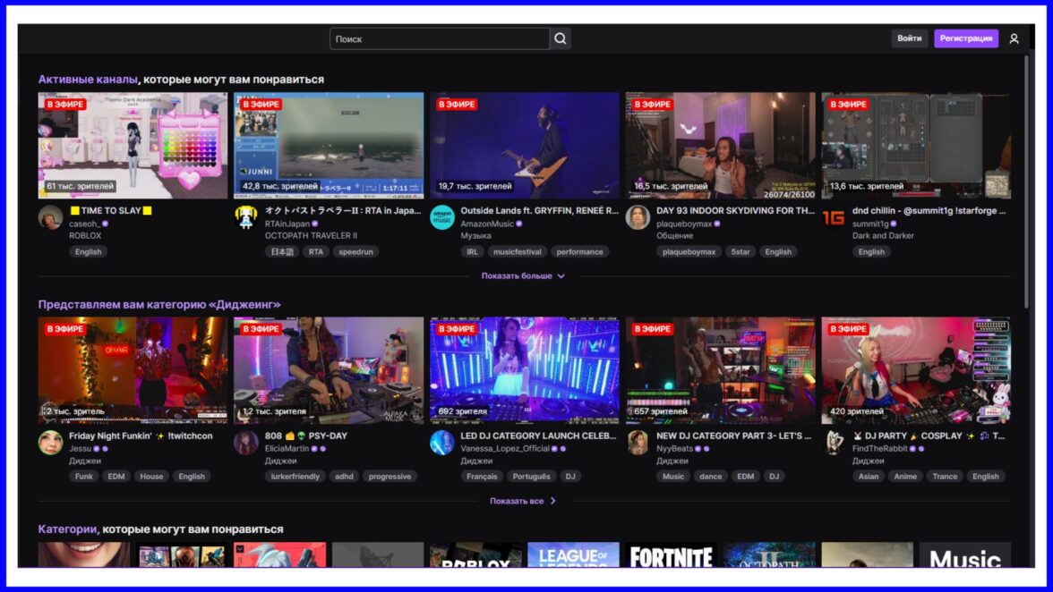 На Twitch* существует огромное количество каналов, посвящённых разным темам и интересам. Пользователи могут подписываться на каналы, чтобы получать уведомления о новых трансляциях и поддерживать любимых стримеров. Это создает динамичное и интерактивное сообщество, где каждый может найти что-то интересное для себя.